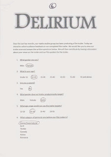 This is the audience feedback our group obtained when gathering together a focus group which we asked opinions on our trailer and other promotional pieces, such as our film posters and film magazines covers.